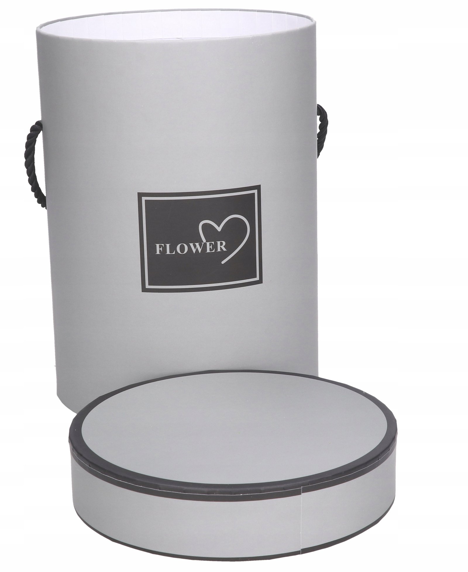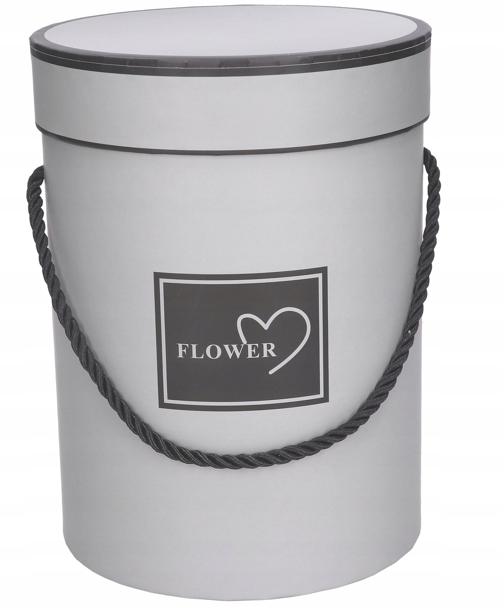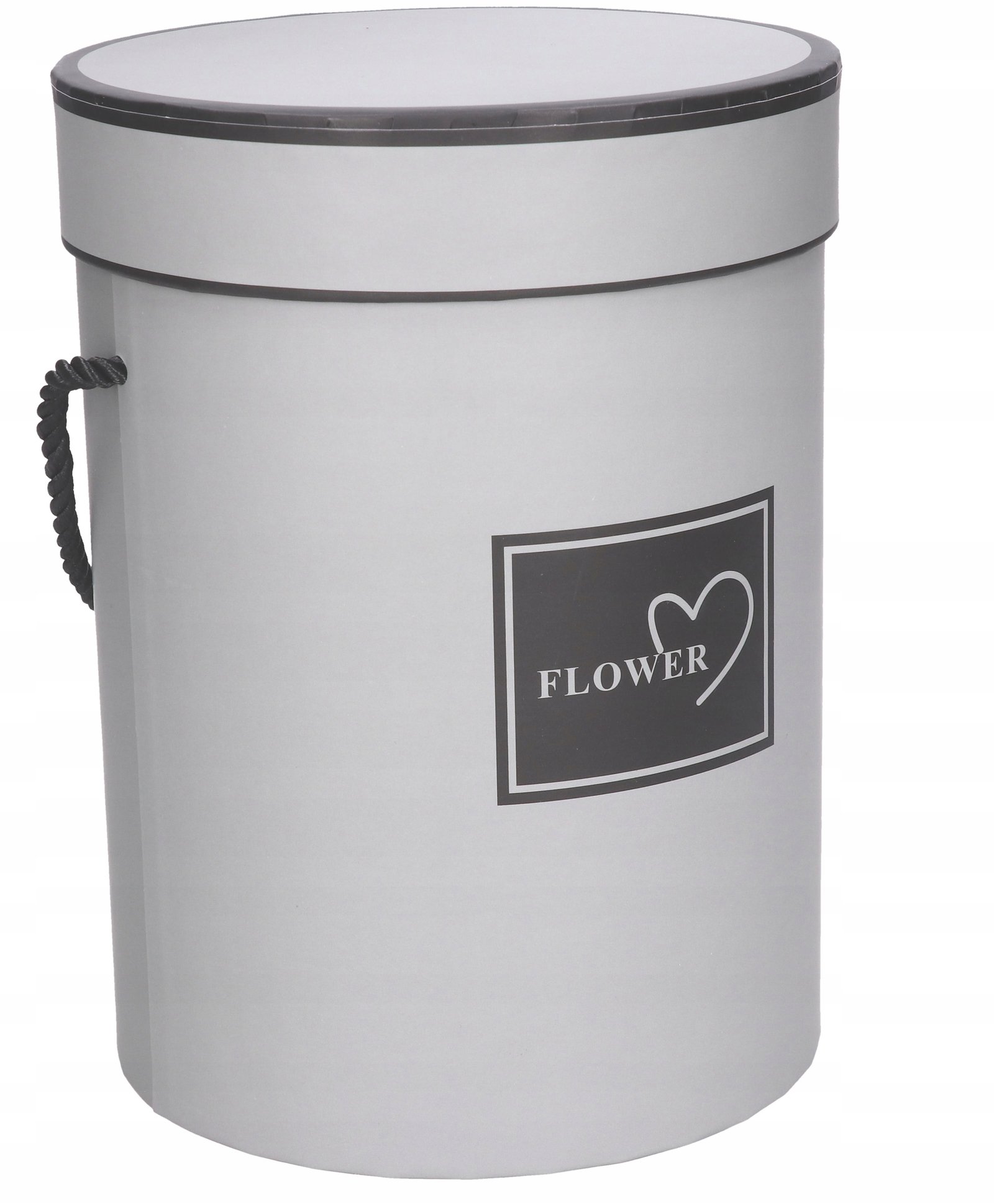 Pudełko jest koloru szarego z czarnym nadrukiem.