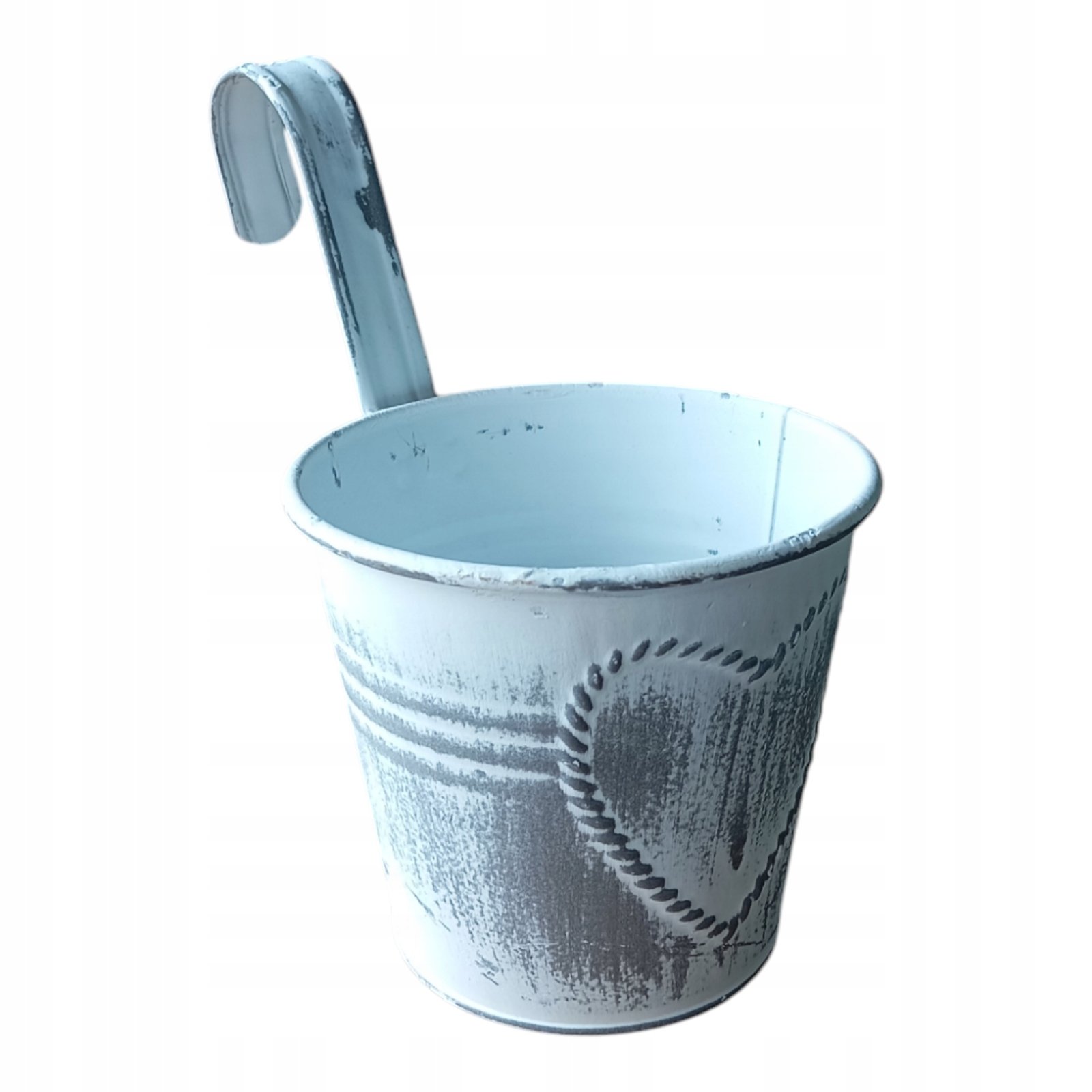 Metalowa osłonka na doniczkę z uchwytem – rustykalna dekoracja kol. Biały